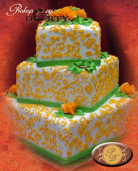Dort svatební třípatrový s ornamenty